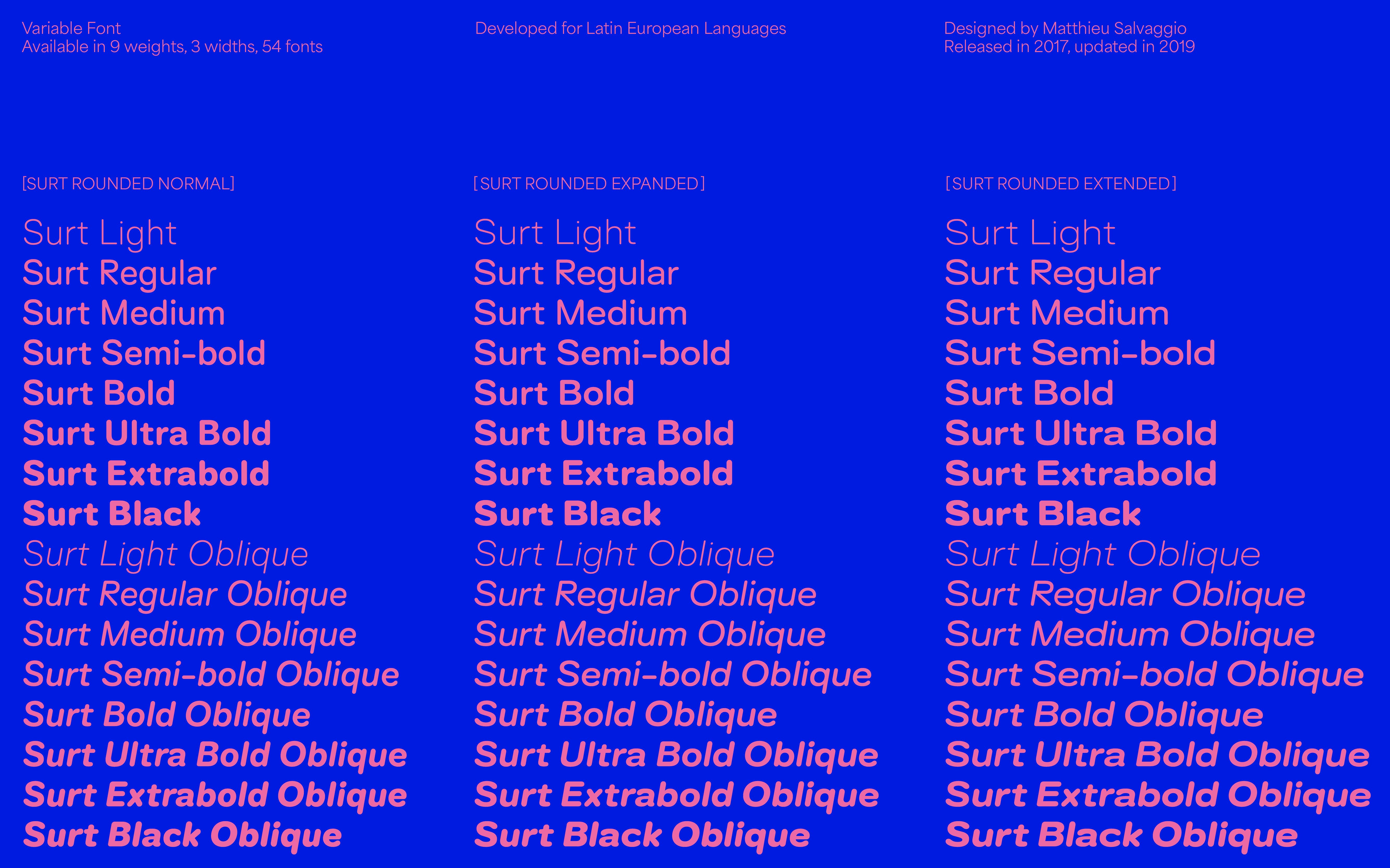 Surt is one of the foundry's bestsellers, and was missing a rounded version to add a fun aspect to this complete family.Â