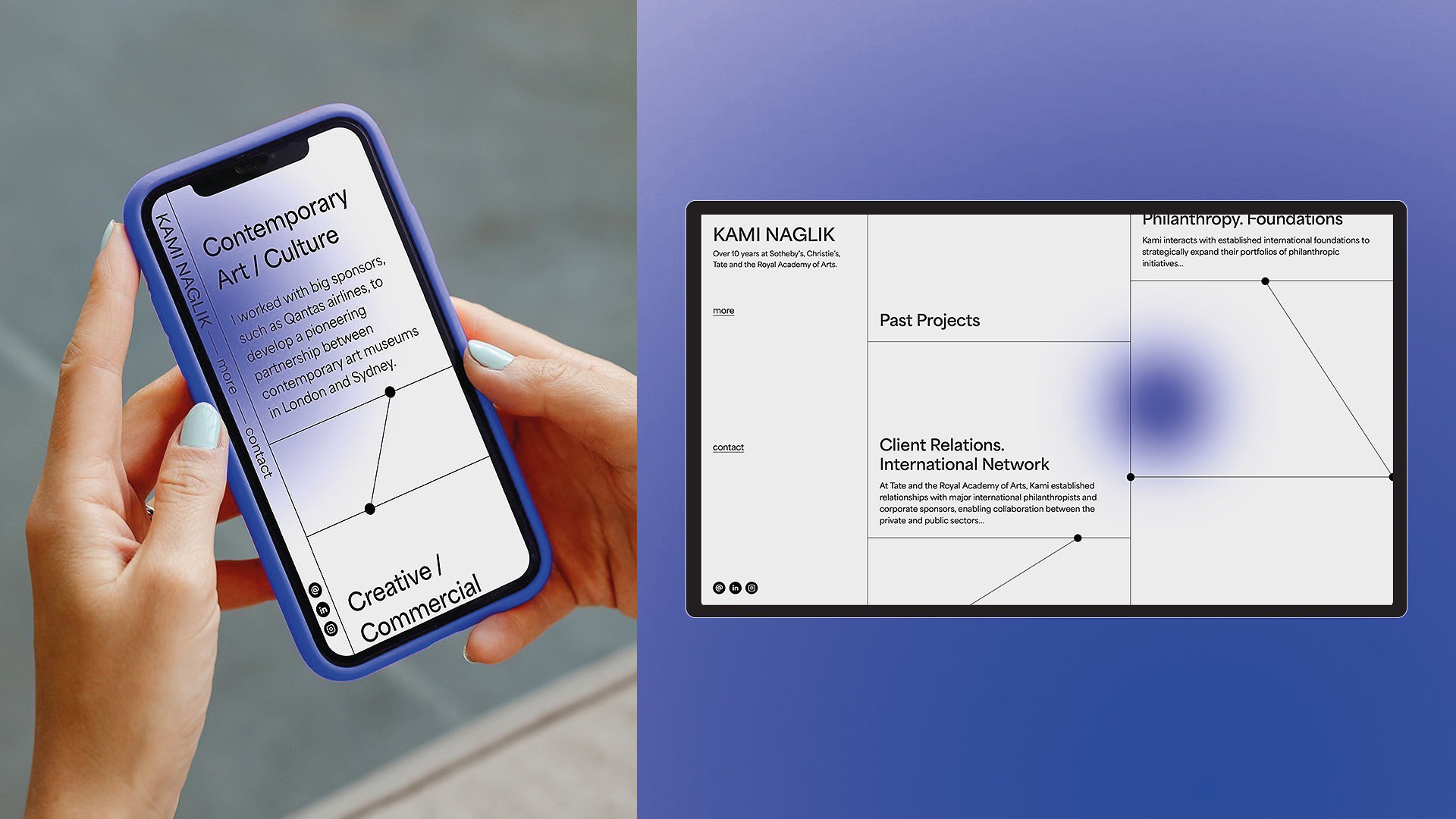 This Swiss like design, grid, typography and color, is the perfect design for various browsers, on smartphone or wide screen.