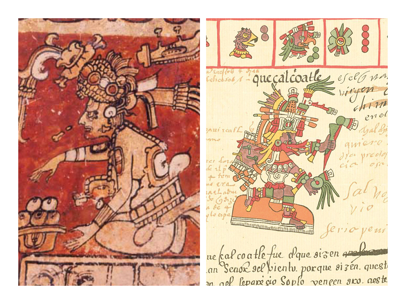 The Aztec pantheon includes many divine figures. But one of the most important is the feathered serpent god Quetzalcoatl, who was responsible for the invention of calendars and books. He is also the protector of goldsmiths and craftsmen.