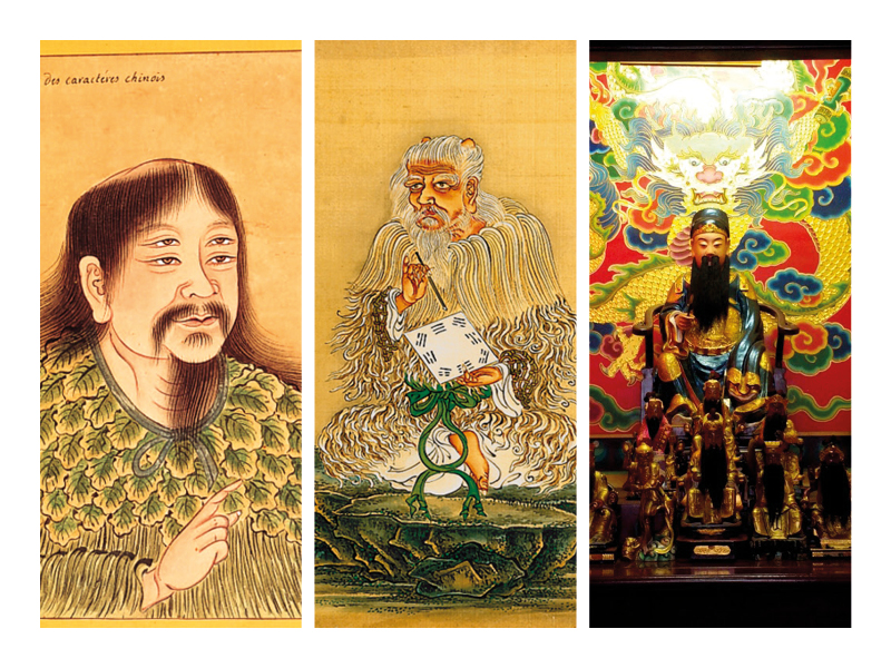 Fuxi is a cultural hero of Chinese mythology and legend. Placed among the most important divine figures alongside his sister and wife Nüwa, he is the creator of humanity, the inventor of music, hunting and fishing, domestication and cooking, but above all of the eight trigrams that represent the principles of fundamental reality. Without being a scripture in the strict sense of the word, it is a system of cosmological divination allowing the representation of ideas. Even before the advent of writing, Shennong succeeded Fuxi as the "Great Ancestor", and as such was responsible for a system of notation using knots and strings.