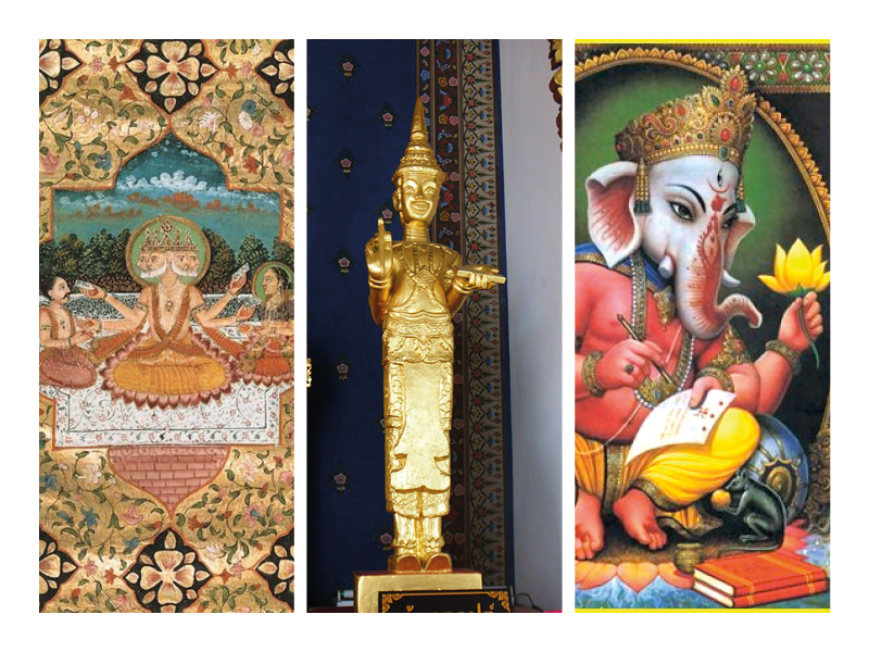 Brahma, the creative god in Hindu mythology, is considered to be the inventor of writing. He is depicted long before our era as holding written palm leaves in his hand. However, it is more the spoken word that is the essence of this sharing with the human world, since many different writing systems still coexist on the Indian continent.