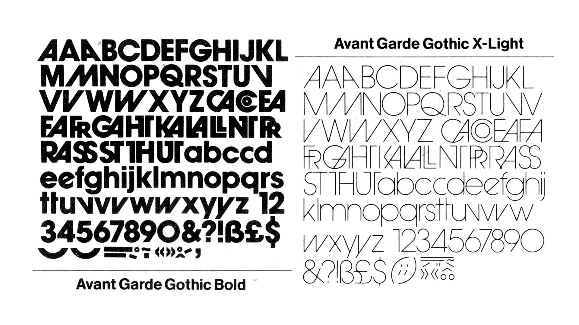The success of the typeface lies not so much in its design, but more in the overall graphic rhythm provided by the extremely tight approach, as with Helvetica (1957), and the richness of its ligatures. The ITC Avant Garde became the prototype of a "toolbox" typography: buying the typeface meant being able to compose logos and titles with the fidelity of Lubalin's spirit.