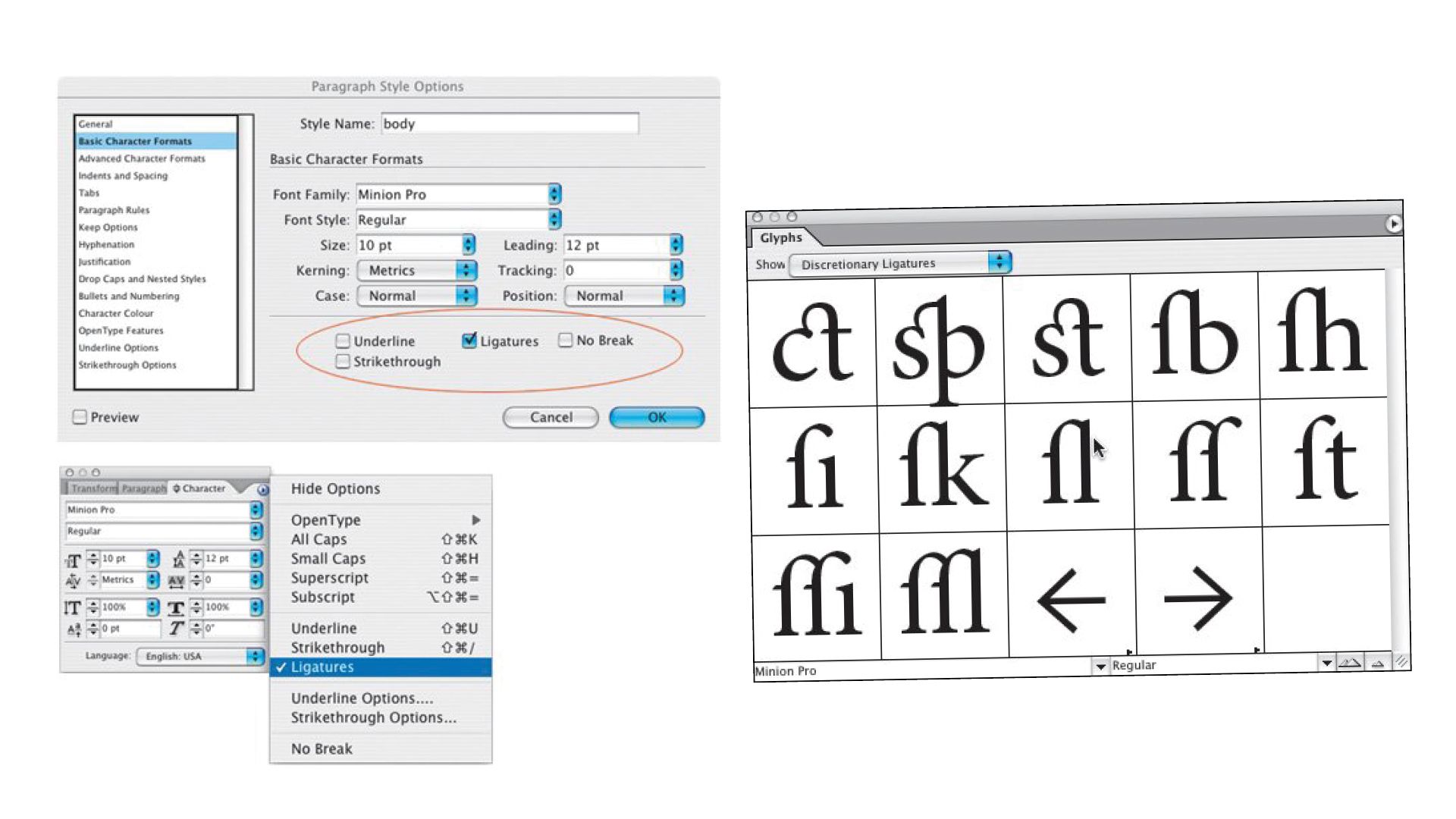 Thanks to the computer, the keyboard was no longer seen as a limitation, but as a peripheral device to be circumvented. The TrueType format, dominant at the time, only allowed a set of 256 glyphs, just enough to include capitals, lower-cases, punctuation, numerals and the diacritics necessary for extended Latin. However, classic ligatures such as ff, fi, ffi, fl and ffl are only available if certain boxes are free and if the designer makes the substitution himself. The TrueType GX format was launched in 1994 to include a system for interpolating along an axis (e.g. weight, width, slant), but also to enable the substitution of a group of characters into a dedicated character: ligatures thus regained their power. However, software was slow to adopt the standard, and few typefaces were adapted to the new file format. That same year, out of the ashes of the GX format, a TrueType Open format was developed by Microsoft, quickly followed by Adobe in 1996, giving birth to the Open Type format. The format's many specific features include encapsulation of TrueType and PostScript Type 1 data, and compatibility between operating systems (Microsoft Windows, Mac OS, Unix/Linux). There's also a 65,536-character character set, enabling the inclusion of multiple writing systems and numerous alternative glyphs within a single file, as well as advanced automatic substitution functions. Providing for alternative characters, such as historical forms or ligatures, becomes child's play: graphic designers need only click on a button on the palette of their page-layout software to replace their text with one of these functions.