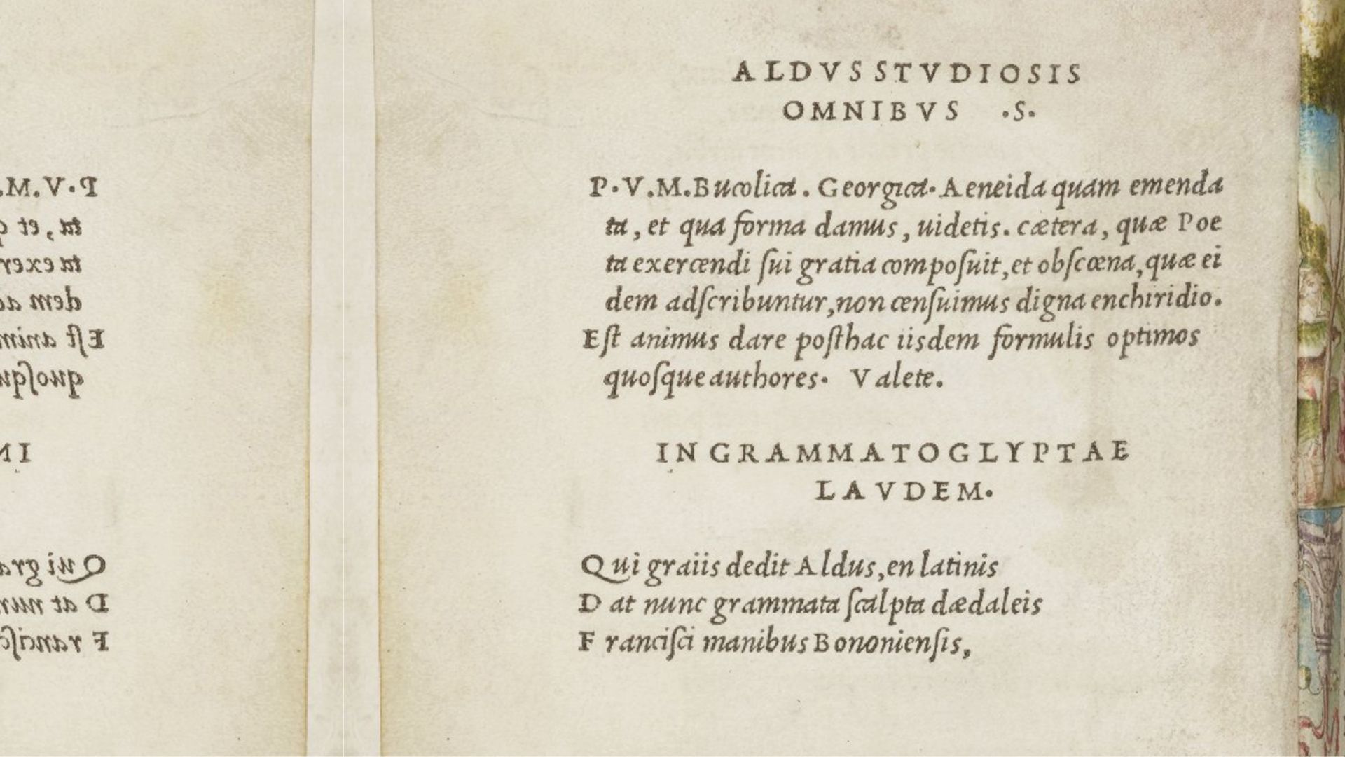Aldus’s eulogy to Francesco da Bologna. Virgil, printed by Aldus Manutius in Venice, 1501. Biblioteca Nazionale Centrale, Florence. griffoggl.com