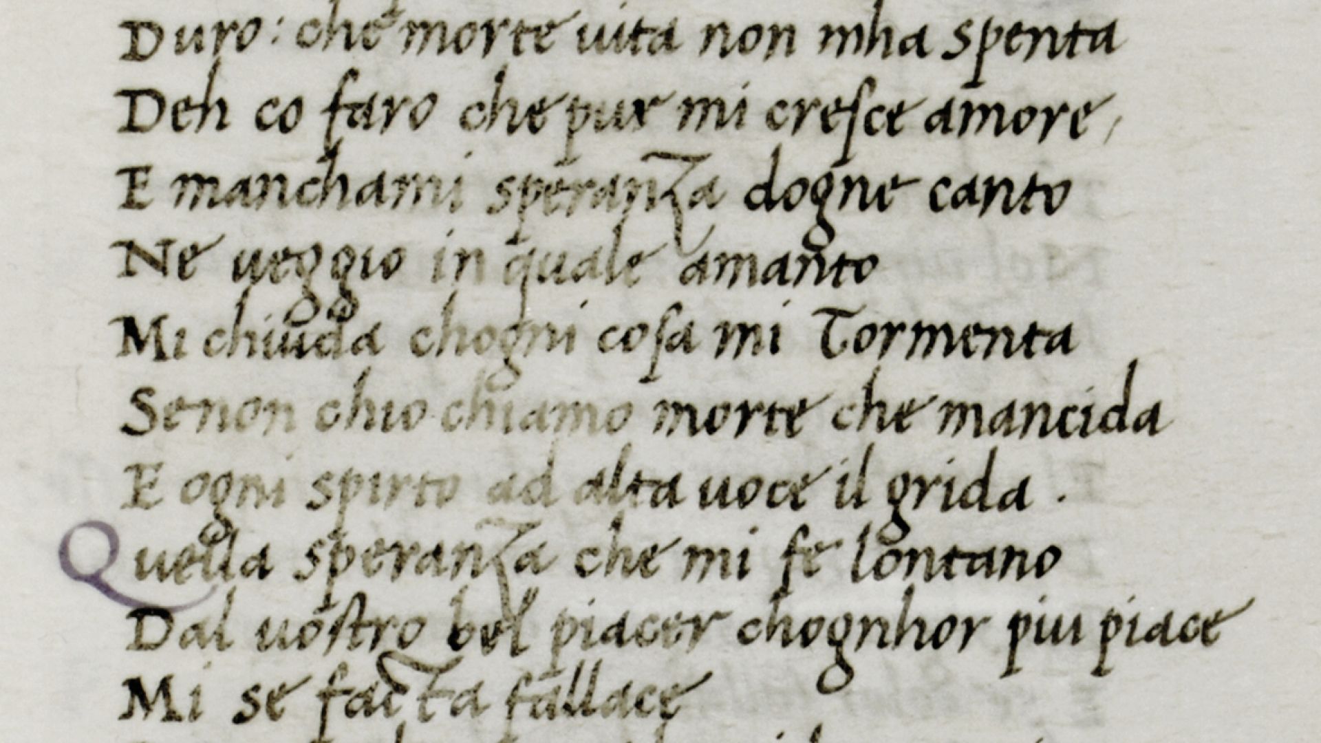 Bartolomeo Sanvito’s chancery italics in a late fifteenth-century manuscript. Bindo Bonichi, Dante e Sennuccio del Bene, Canzoni, leaf 65. Milan, Archivio Storico Civico e Biblioteca Trivulziana. griffoggl.com