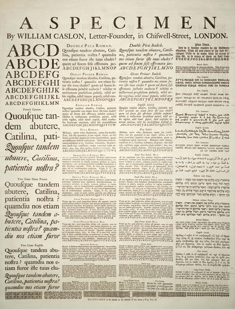 From the appearance of printing in the West until about the 19th century, typographic design remained unchanged: a designer drew inspiration from the past to reformulate in a new context a typeface capable of reflecting the culture of a given time and place. And if Elzevir, Caslon, Fournier, Baskerville, Didot, Bodoni and then other designers provide their alphabets, none of them are thought to belong to the same family. Their homogeneity is due to the tradition as much as to the know-how of each creator.
