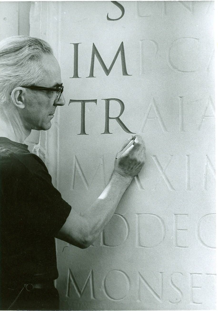 Edward Catich 1906-1979 is the man who studied in depth how those letters have been produced. He was an orphan when he learnt sign-writing under Walter Heberling. After graduating high school in 1924, Catich studied Art at the School of the Art Institute of Chicago from 1926 till 1929, then he received a Masterâs degree in art at University of Iowa. In 1935, he traveled to Rome to study at Pontifical Gregorian University for the Catholic priesthood, where he also made a study of archaeology and paleography. Thatâs during the late 1940s and the early 1950s that Catich began exploring the Trajan column and its wonderful Roman Capitals.