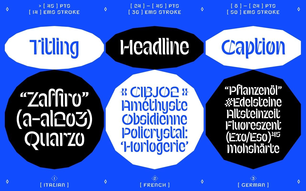 Although conceived around the same time, the intentions behind these two fonts were rather different. Sapfir was a provocative and exploratory work, created without a specific use in mind, which gave me the freedom to push creative boundaries with a narrower scope. In contrast, Sagittaire was designed to serve as the foundation for a versatile type system, requiring me to move beyond the initial concept and learn to adapt the original sketch to accommodate a full range of weights and optical sizes.