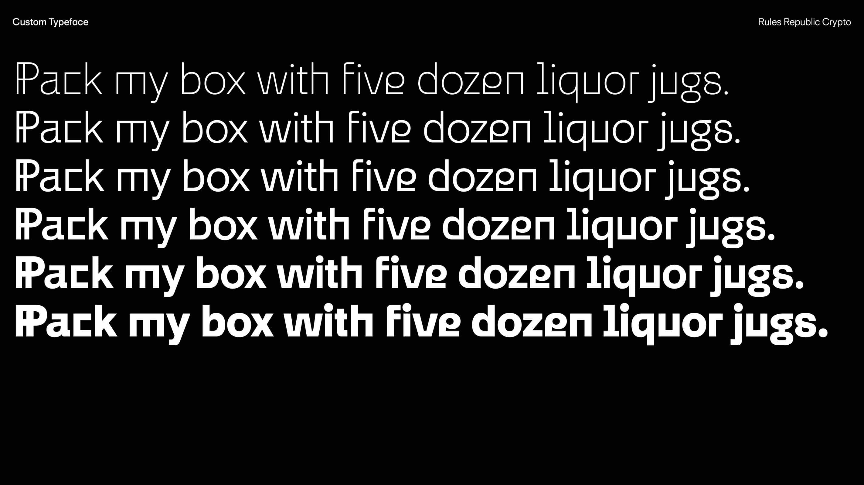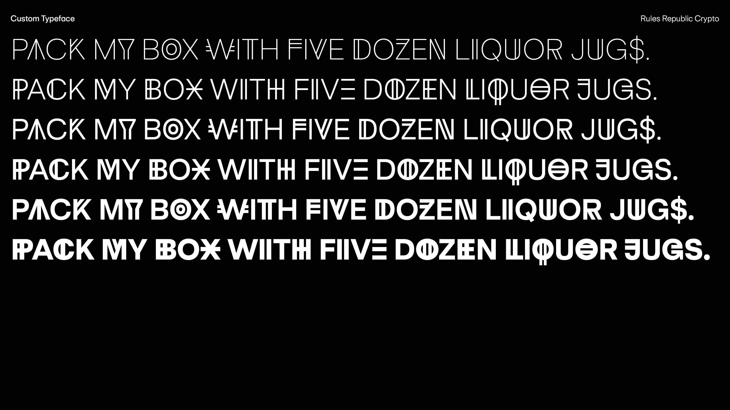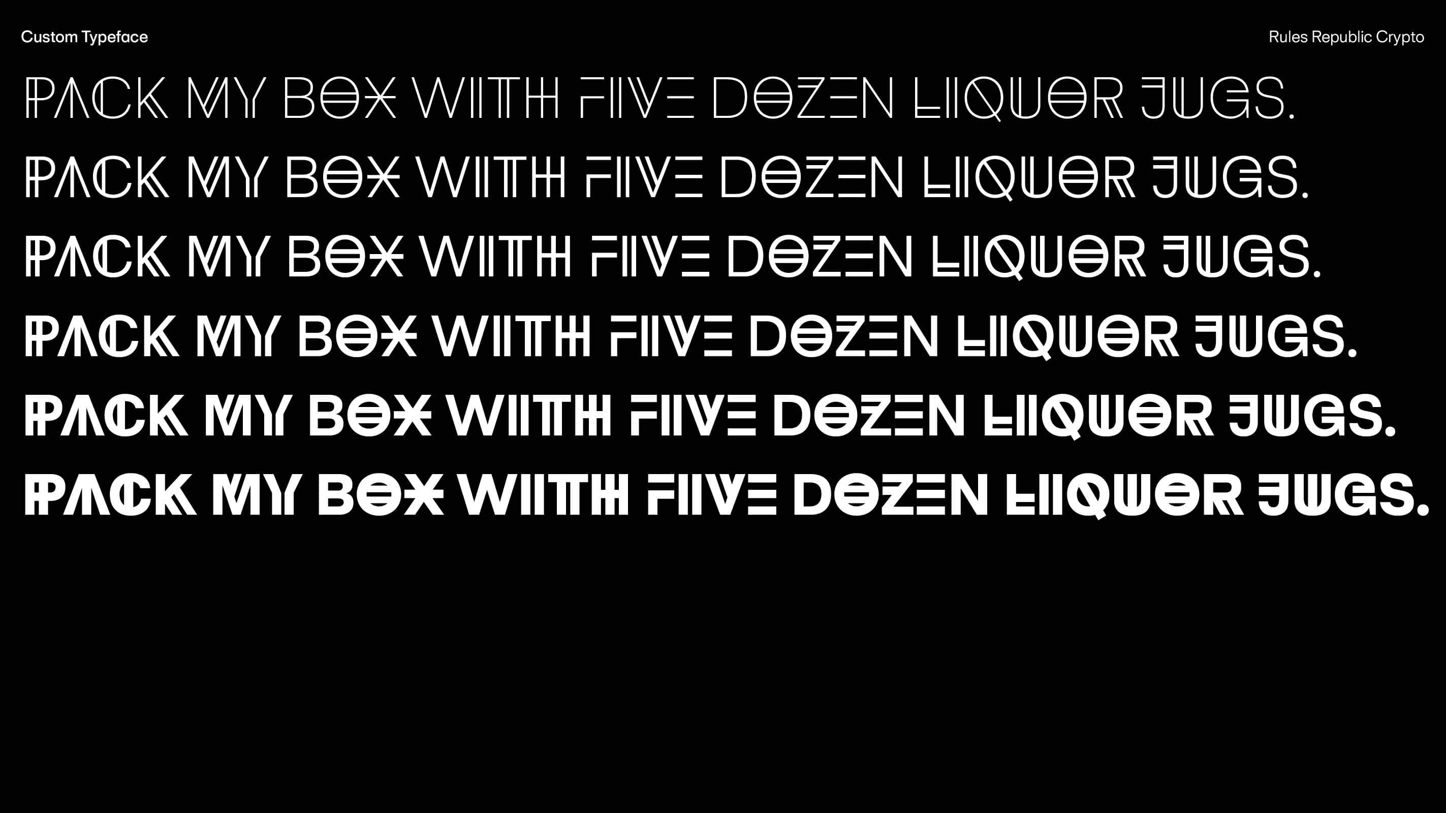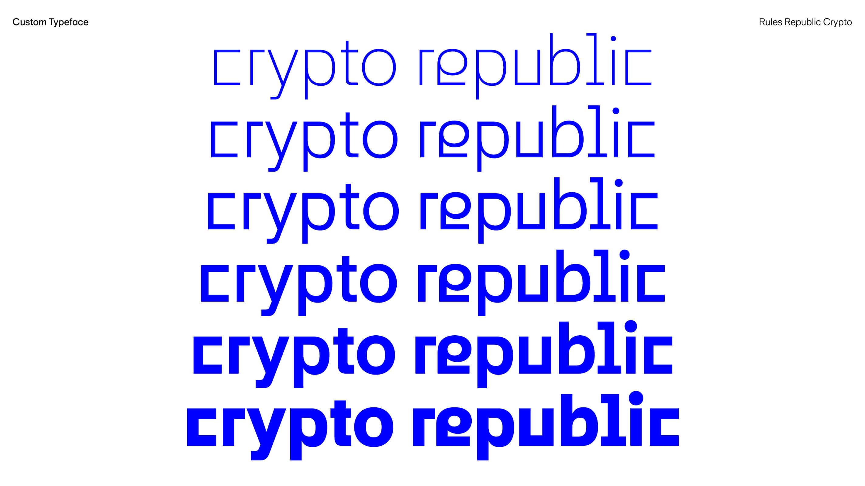 We were contacted by Republic Crypto to design a custom font for their brand system typeface.