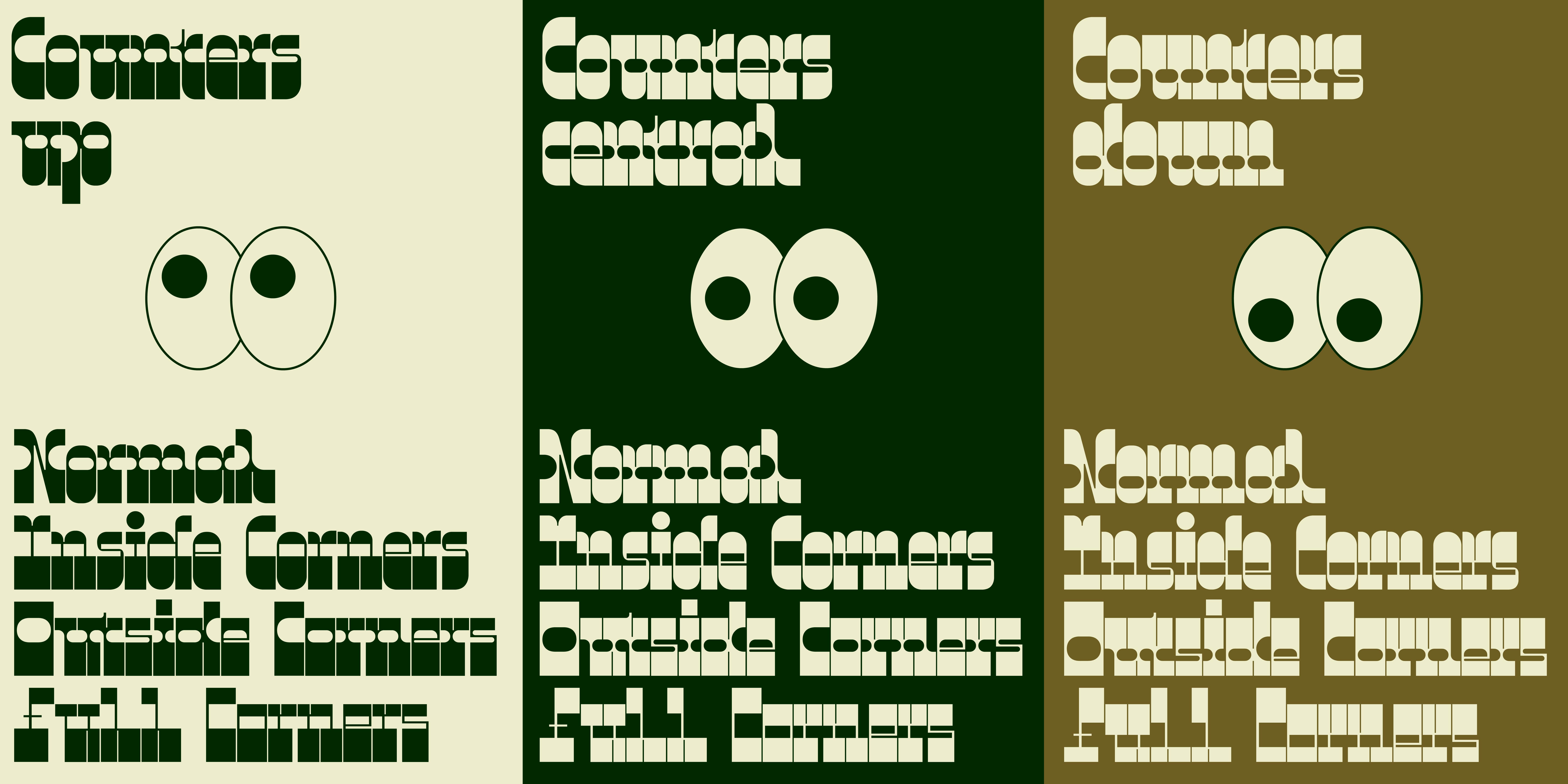 The font is available in 8 styles, with square angles appearing in the counter forms as well as on the exteriors of the letters, offering endless possibilities.