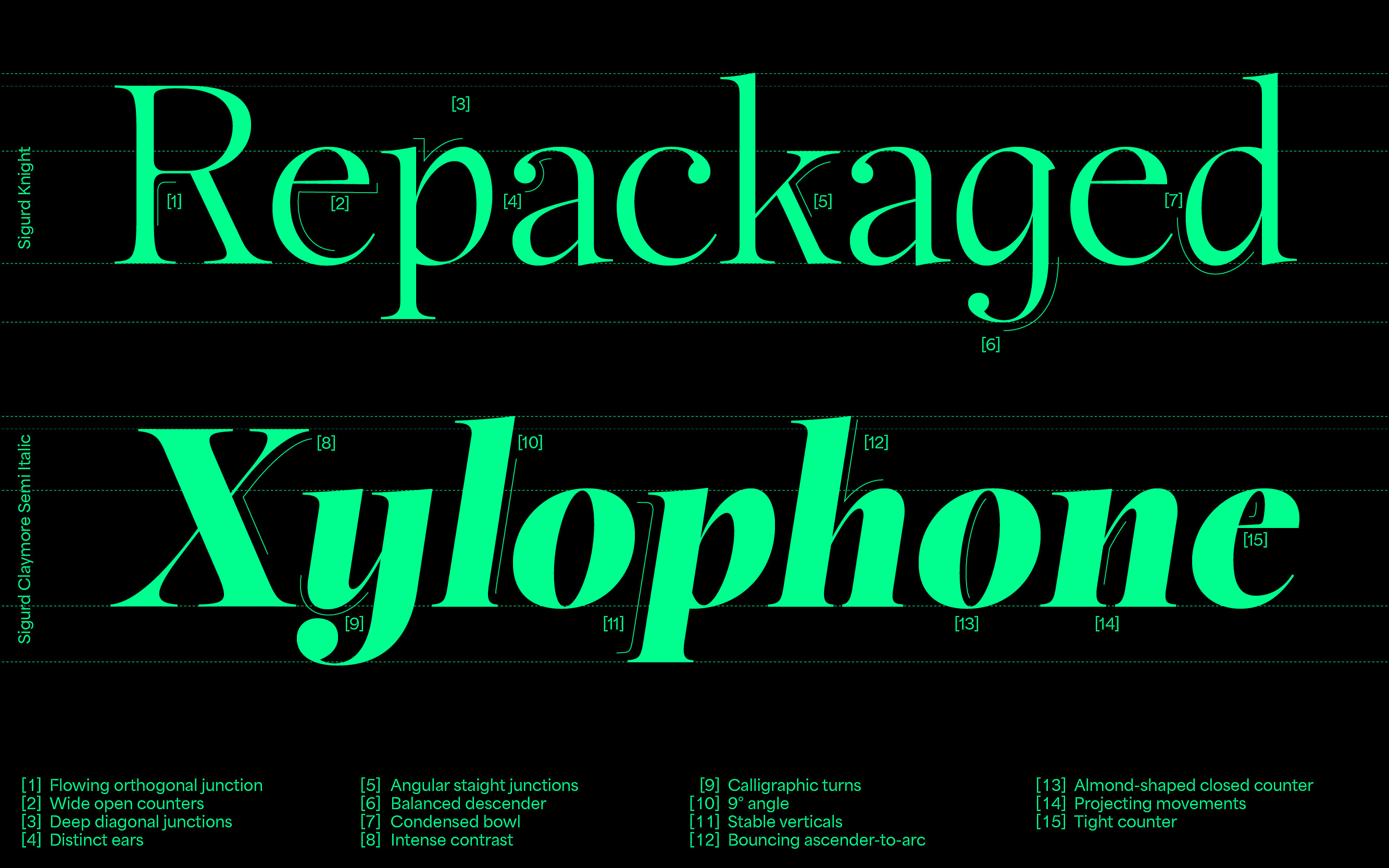 Sigurd is a font family inspired by the Norse hero of the Nibelungen Saga, Siegfried, from medieval literature. Sigurd is a font family gathering its inspiration from Norse mythology in the shape of swords, feudal armours and medieval lettering work. It's an elegant typeface family with a strong design construction and tons of alternate characters and various swashes. Allowing a wide variety of uses in text layouts for display uses.