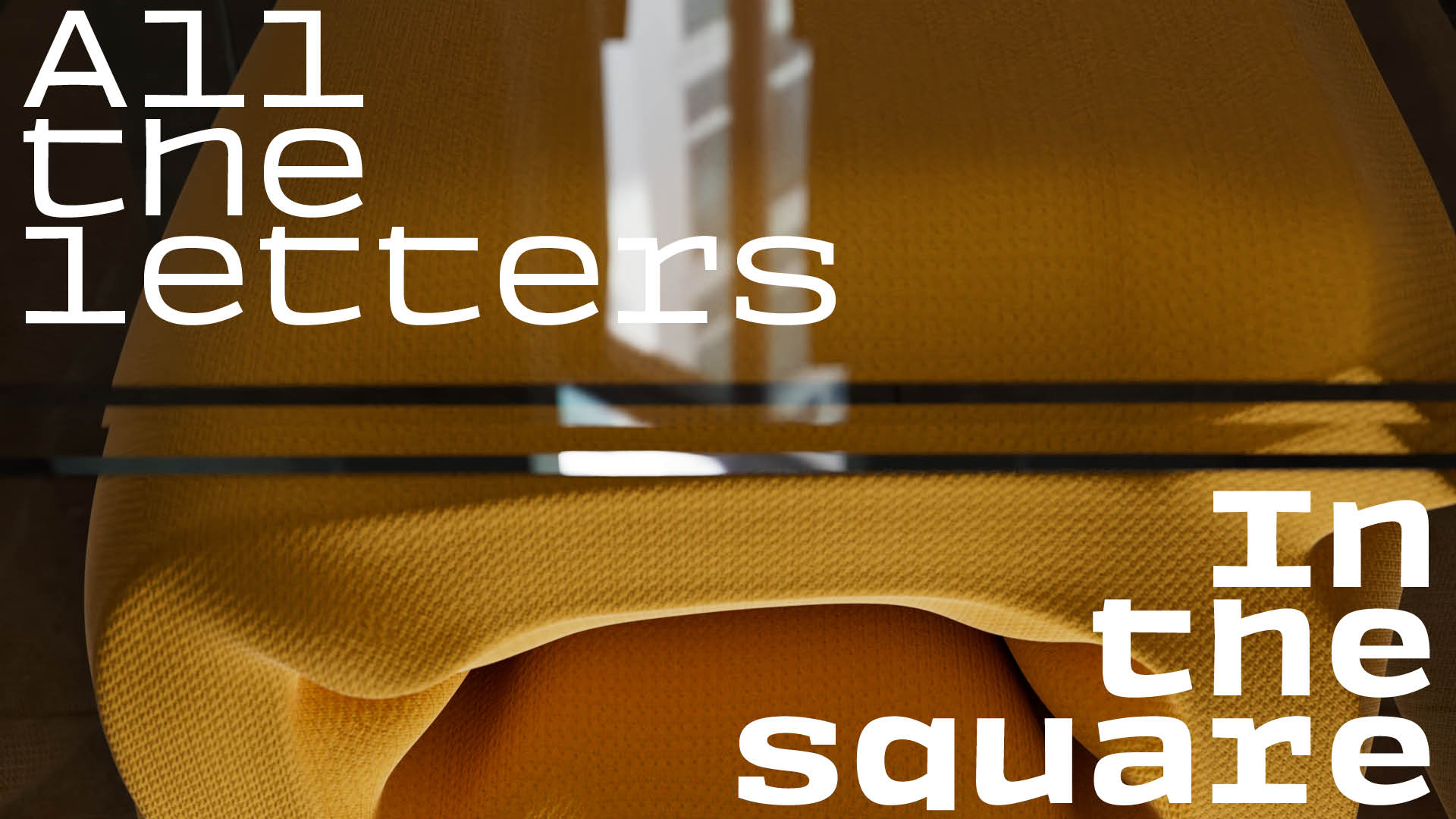 Square font is a mono font, each sign is built within the constraint of a square, which enables it to be written from top to bottom and horizontally and vice versa. The initial idea for Square font was to imagine a square (a small park, in French), seen from above: if you look at the lightest version, the shape of the letter defines the park by its external contour. If you consider the boldest version, it defines the surface of the park…. The outline of the letters are lively and slightly flared, the counter-forms now look like kids playing there on a Saturday. The character fills and empties from the inside while keeping the same outline in each version, which allows many games of superposition with this mono font.
