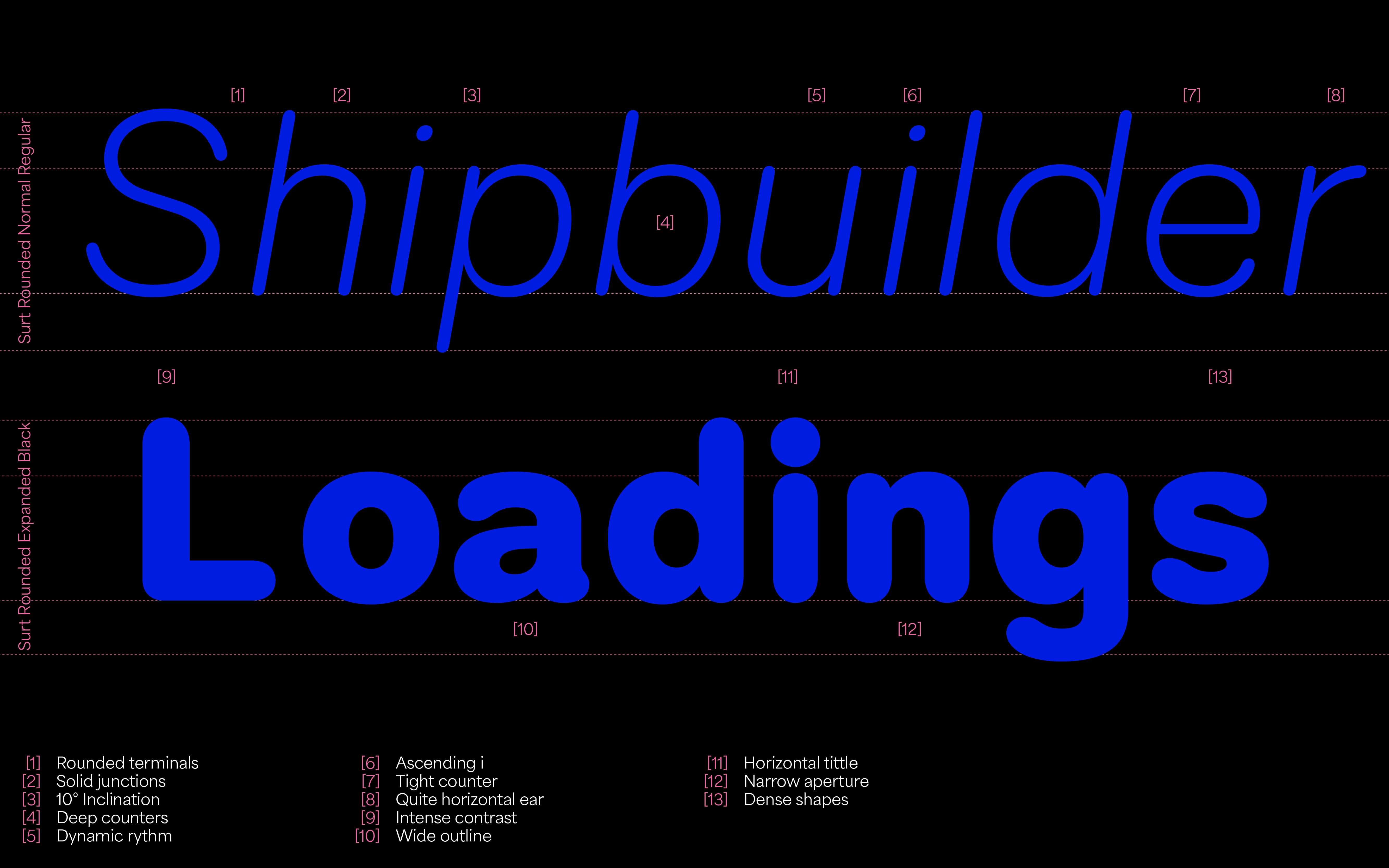 While the history of geometric fonts can be traced back to the early days of the modernist movement in the early twentieth century. Surt's inspiration is more contemporary and in link to strong brutalist architecture than historical geometric or even neo grotesque like fonts.