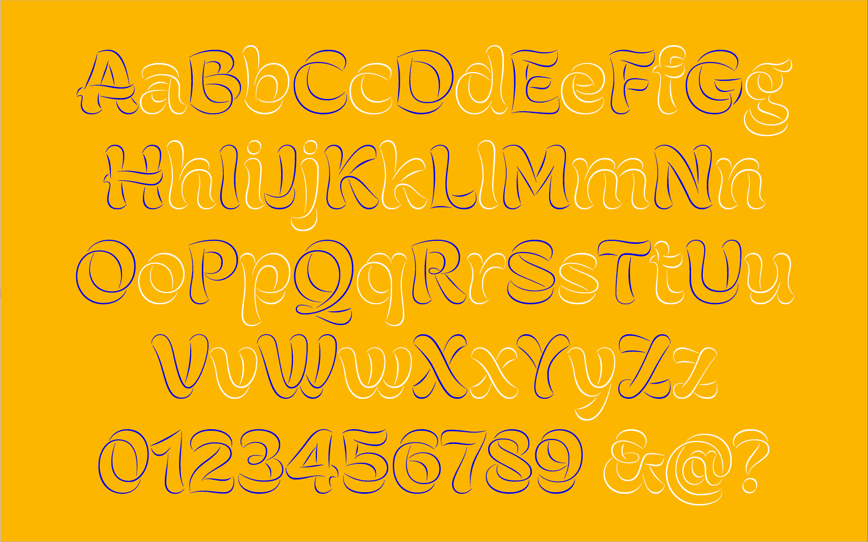 Swirl Display is a graceful outline display typeface designed by Duc during his study at Type West. The typeface is the result of the study on the flat brush's expressiveness: how the twists and turns of such a physical tool can create a dynamic and humanistic texture for a typeface. The letterforms are rounded, with tapered strokes in the middle and flared ends. Swirl was initially designed in solid form, which was later reduced to its bare, skeletal and suggestive outlines, thin and graceful. This design change makes the font bold yet airy, soft yet sharp, full yet hungry for more.
