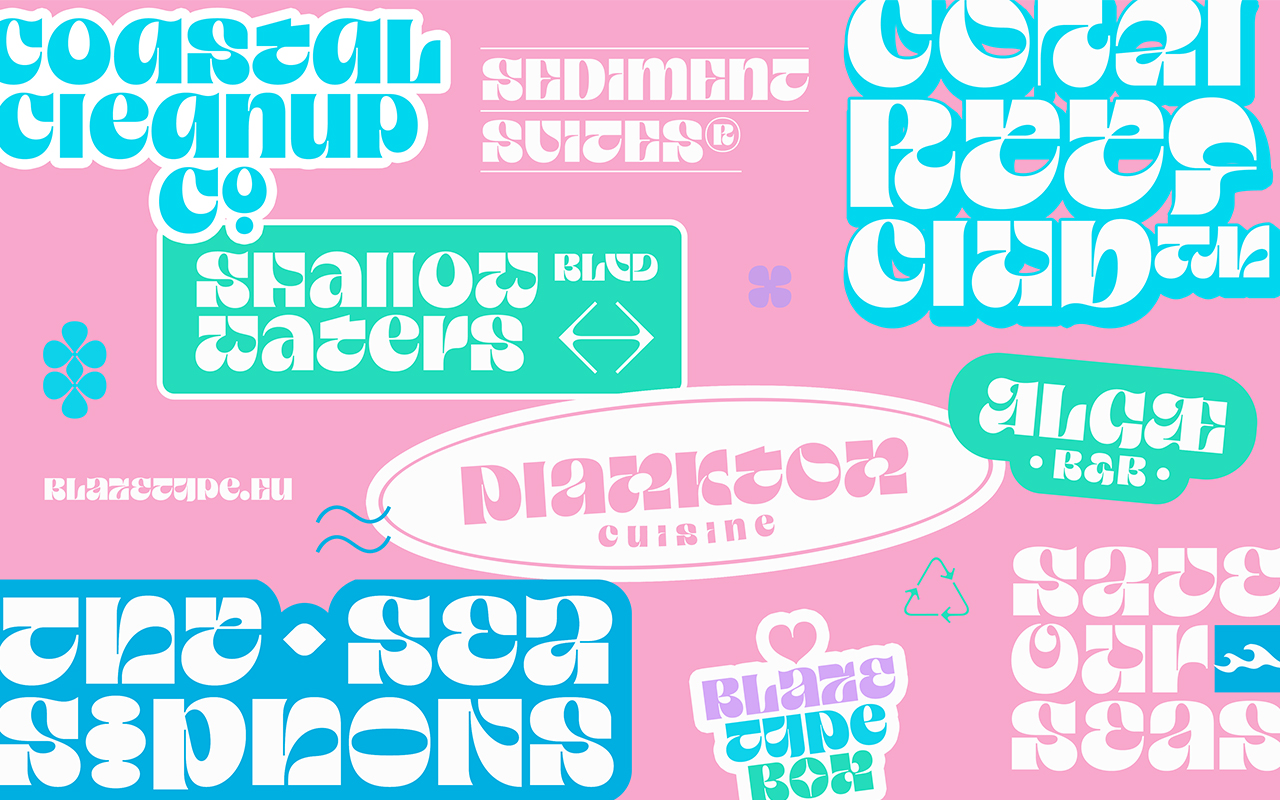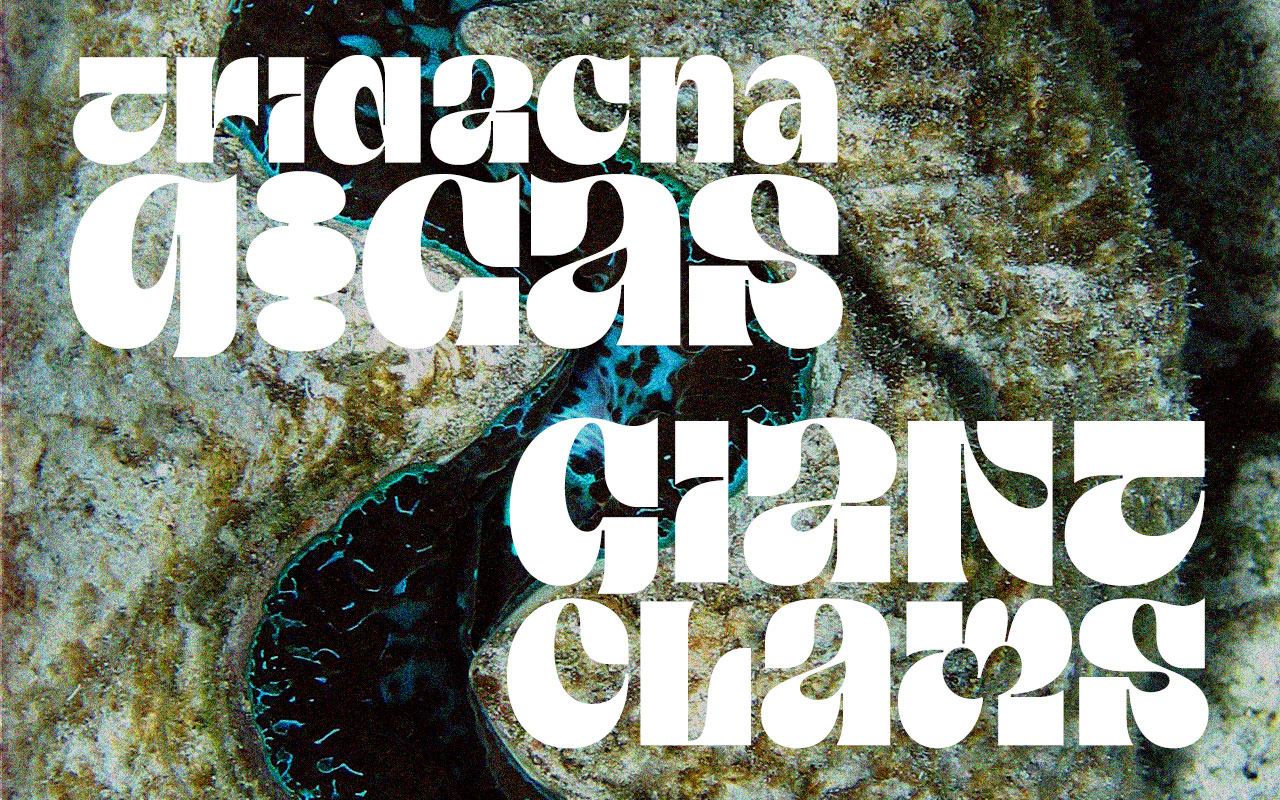 Given the vulnerable conservation status of giant clams largely due to overexploitation and habitat destruction, the design process was driven by the awareness that these marine treasures must stay underwater where they belong. From rejecting ascenders and pushing the heights of the main letterforms to align at the cap line emerged this dense yet majestic unicase type construction.